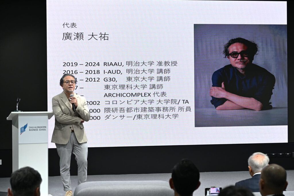 เมื่อวันที่ 21 กันยายน 2568 หลักสูตร MBA จุฬาฯ ขอกราบขอบพระคุณ Assoc. Prof. Daisuke Hirose จาก Meiji University, Founder & Principal of ARCHICOMPLEX ประเทศญี่ปุ่น ที่ได้ให้เกียรติมาแบ่งปันความรู้และมุมมองด้านสถาปัตยกรรม ผ่านหัวข้อสำคัญเกี่ยวกับ Parametric Design, Optimization, Virtual Reality, BIM และการประยุกต์ใช้ A.I. ในงานออกแบบ และ H.E. Mr. Masato Otaka, เอกอัครราชทูตญี่ปุ่นประจำประเทศไทย ที่ให้เกียรติมาร่วมงานและกล่าวปาฐกถาพิเศษอันเป็นส่วนหนึ่งในการบรรยายหัวข้อ “ENDURING SUCCESS: JAPANESE MANAGEMENT VALUES FROM 136 YEARS OF FAMILY BUSINESS LEGACY”