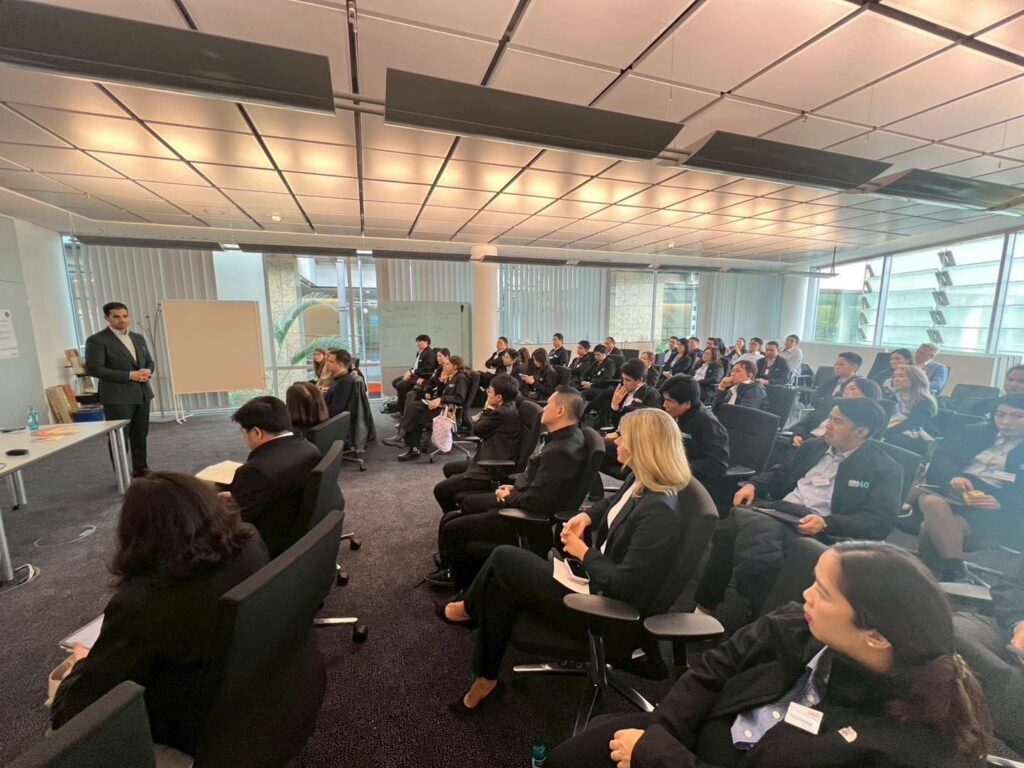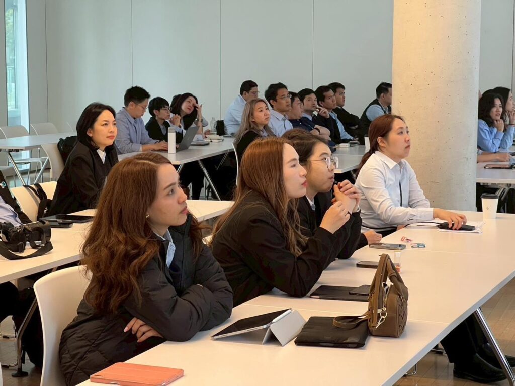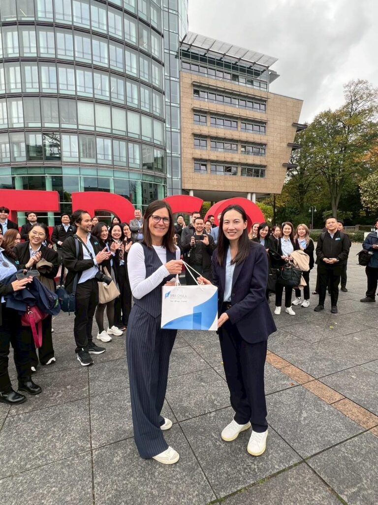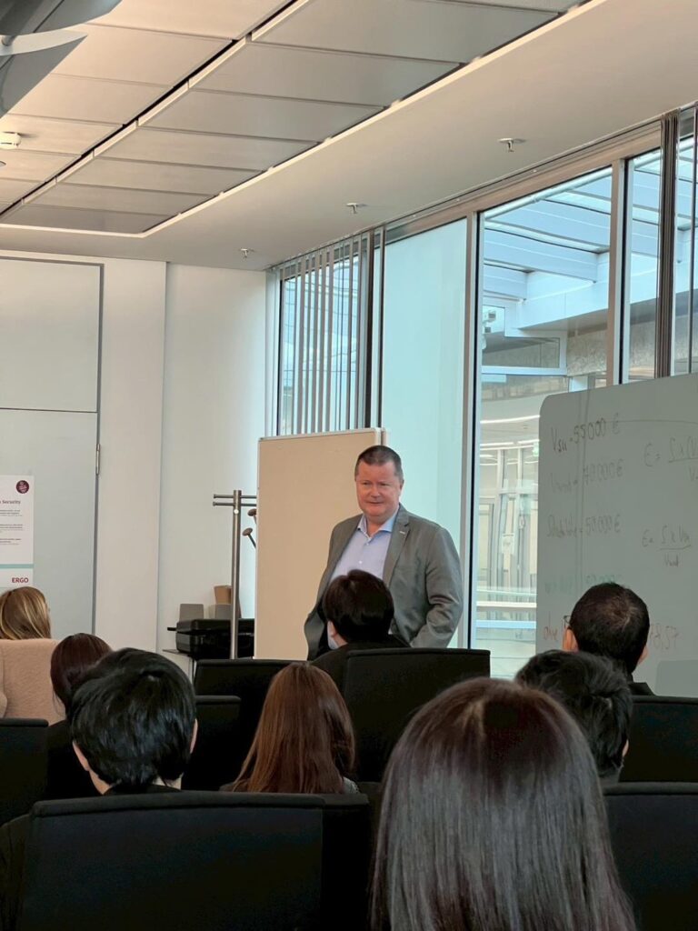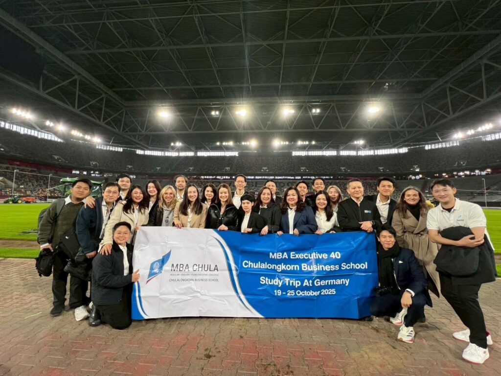 นิสิต MBA ได้เรียนรู้เกี่ยวกับ Innovation Strategy และ Digitalization ของ ERGO บริษัทประกันชั้นนำของประเทศเยอรมัน บนเส้นทางสู่การเป็น บริษัทดิจิทัลเต็มรูปแบบภายในปี 2025 โดยเทคโนโลยีอย่าง AI หุ่นยนต์ ระบบเสียง Process Mining และ Metaverse กำลังเปลี่ยนแปลงกระบวนการประกันภัย การฝึกอบรม และช่องทางบริการลูกค้าในอนาคต