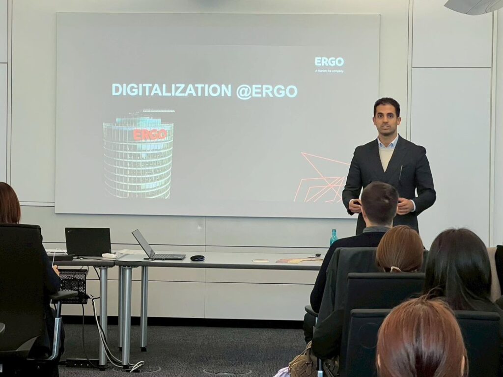 Our MBA students explored ERGO’s digitalization and innovation strategy on its path to becoming a digital-first company by 2025. ERGO is a leading insurance company in Germany. Technologies like AI, robotics, voice, process mining, and the metaverse are transforming insurance operations and customer channels.