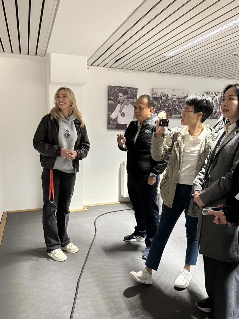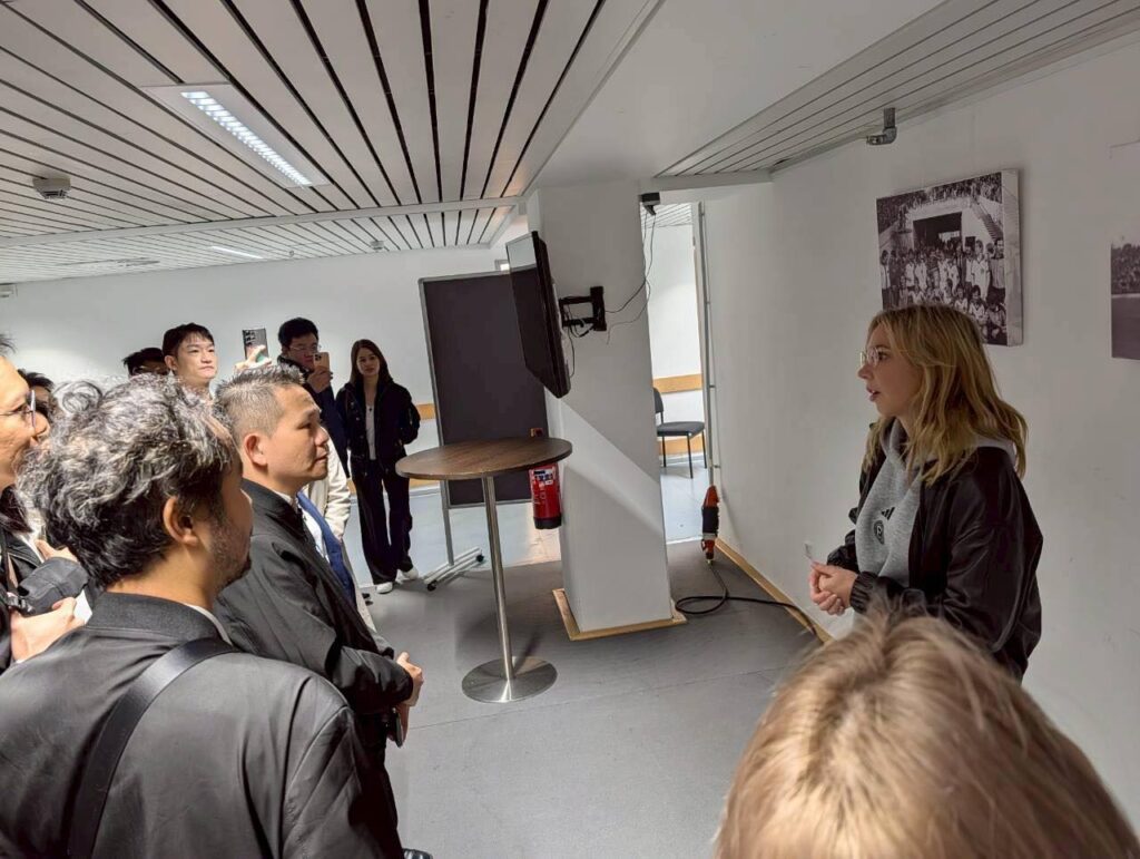 นิสิตได้สัมผัสเบื้องหลังการดำเนินงานของสนามกีฬาระดับชาติของเยอรมันอย่างใกล้ชิด ตั้งแต่สนามฟุตบอลไปจนถึงห้องแถลงข่าว นับเป็นจุดเริ่มต้นที่ยอดเยี่ยมสำหรับการเดินทางแห่งการเรียนรู้ การสร้างเครือข่าย และการเปิดรับประสบการณ์ระดับโลก!