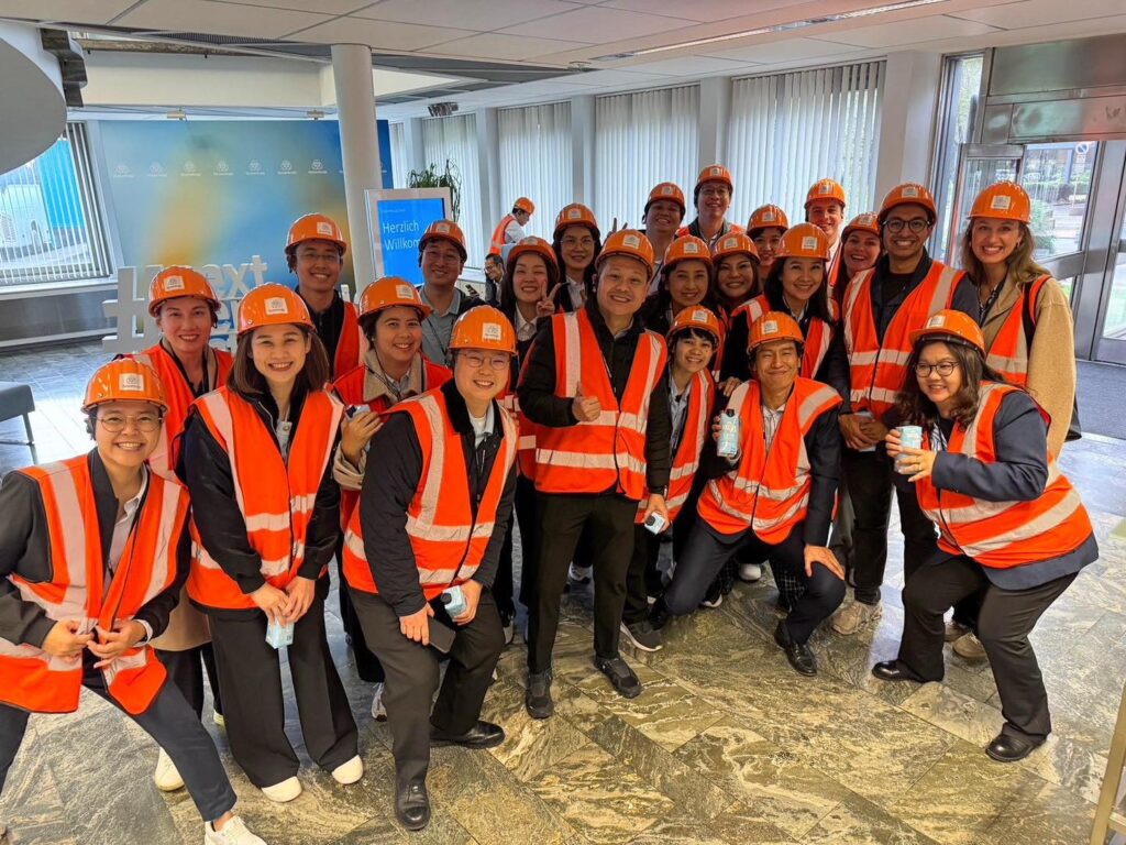 ในช่วงบ่ายนิสิตเยี่ยมชมโรงงานผลิตเหล็กกล้าของบริษัท Thyssenkrupp AG ณ เมือง Duisburg ซึ่งใช้เทคโนโลยีการผลิตอันทันสมัยและถือเป็นบริษัทผลิตเหล็กกล้าอันดับหนึ่งของประเทศเยอรมนี นอกจากบริษัทจะให้ความสำคัญอย่างมากกับคุณภาพของสินค้าแล้ว ยังใส่ใจในเรื่องสภาพแวดล้อมการทำงานที่ปลอดภัยและความเป็นมิตรกับสิ่งแวดล้อม โดยบริษัทตั้งเป้าว่าจะเป็นโรงงานผลิตเหล็กกล้า Net Zero ให้ได้ภายในปี 2045 ซึ่งเป็นเรื่องท้าทายอย่างยิ่งสำหรับธุรกิจในอุตสาหกรรมหนักที่มักมีการปล่อย Carbon เป็นปริมาณมาก แต่การเดินทางสู่ Net Zero ของ Thyssenkrupp ได้เริ่มขึ้นแล้ว และคณะนิสิตได้รับแรงบันดาลใจที่จะนำแนวคิดต่างๆ ในการลด Carbon Footprint ไปปรับใช้กับธุรกิจของตนในอนาคต
