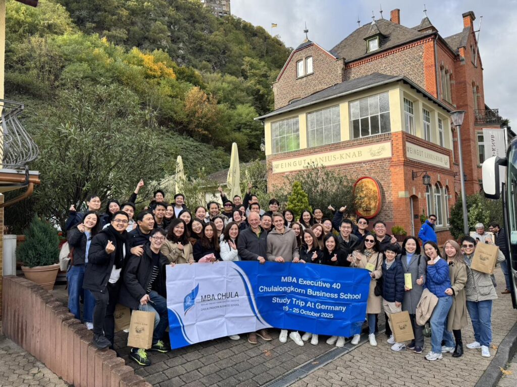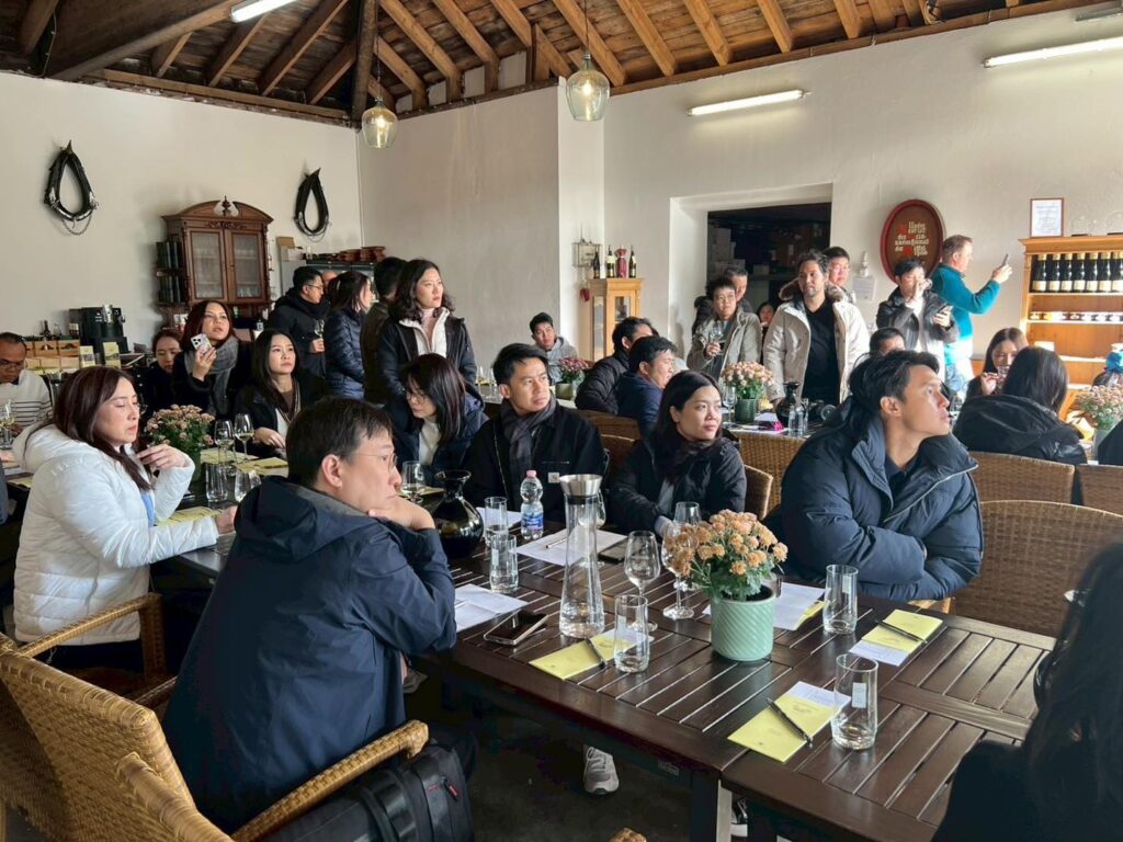 คณะนิสิต MBA ได้เยี่ยมชม Weingut Lanius-Knab ไวน์เนอรี่ชื่อดังที่เชี่ยวชาญด้านไวน์ Riesling และเป็นหนึ่งในสมาชิกที่ภาคภูมิใจของ VDP (สมาคมไร่ไวน์ Prädikat แห่งประเทศเยอรมัน) มานานกว่า 30 ปี การเยี่ยมชมครั้งนี้ให้ข้อมูลเชิงลึกที่มีคุณค่าเกี่ยวกับอุตสาหกรรมไวน์ของเยอรมัน การปลูกองุ่นอย่างยั่งยืน และกลยุทธ์การส่งออกระดับโลก ตามด้วยการเยี่ยมชมโรงงานผลิตและกิจกรรมชิมไวน์
