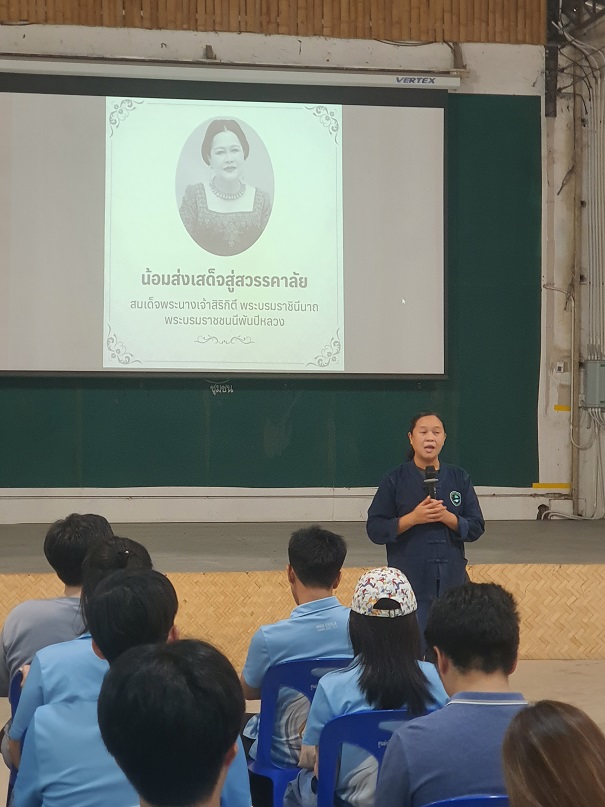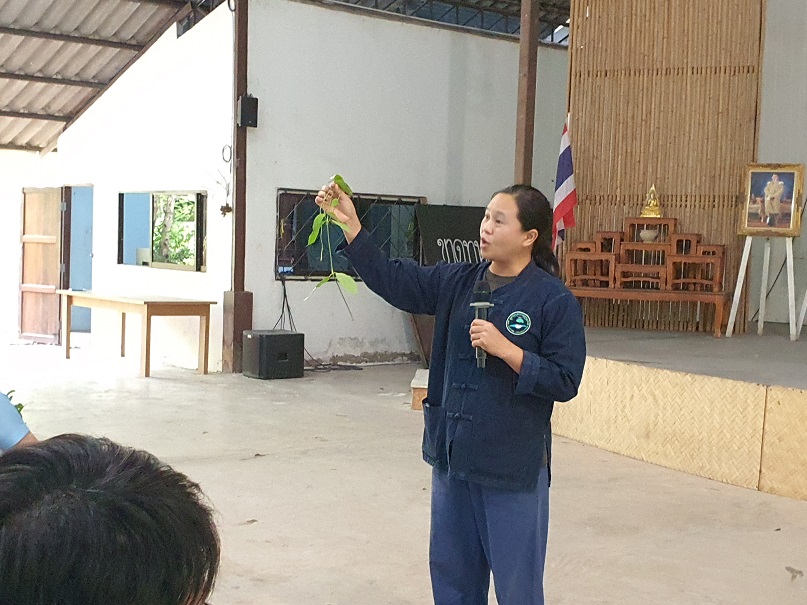 สำหรับกิจกรรมในช่วงเช้า คณะนิสิตได้ร่วมกันยืนสงบนิ่งเพื่อเป็นการถวายอาลัยต่อสมเด็จพระนางเจ้าสิริกิติ์ พระบรมราชินีนาถ พระบรมราชชนนีพันปีหลวง จากนั้นจึงเข้าฟังบรรยายจากคุณศลิษา ศัลยกำธร ผู้อำนวยการผู้อำนวยการศูนย์กสิกรรมธรรมชาติมาบเอื้อง เกี่ยวกับที่มาของศูนย์กสิกรรมธรรมชาติแห่งนี้ และได้เรียนรู้ตัวอย่างของการปลูกพืชพันธุ์ต่างๆที่เป็นประโยชน์ ได้เข้าชมพื้นที่ตัวอย่างทั้งป่าที่อุดมสมบูรณ์ เต็มไปด้วยพืชพันธุ์ แหล่งน้ำธรรมชาติ ทุ่งนา และสวนสมุนไพรที่มีประโยชน์ต่อการดำรงชีพ