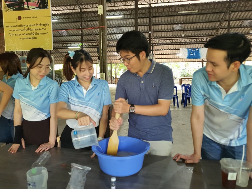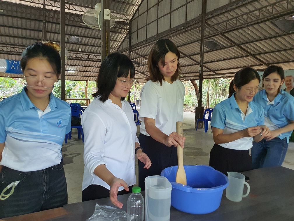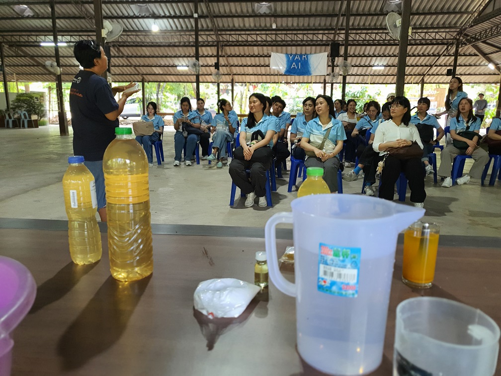 ในช่วงบ่าย นิสิตได้เข้าร่วม Workshop การทำน้ำยาทำคามสะอาดเอนกประสงค์ และน้ำยาบ้วนปากออร์แกนิค ที่สามารถผลิตได้เองโดยใช้วัตถุจากธรรมชาติที่มี เป็นตัวอย่างของผลิตภัณท์ทำมือที่สามารถนำมาต่อยอดสู่การเป็นผลิตภัณท์ชุมชน นำต่อไปจำหน่ายกลายเป็นรายได้ได้อีกทางหนึ่ง