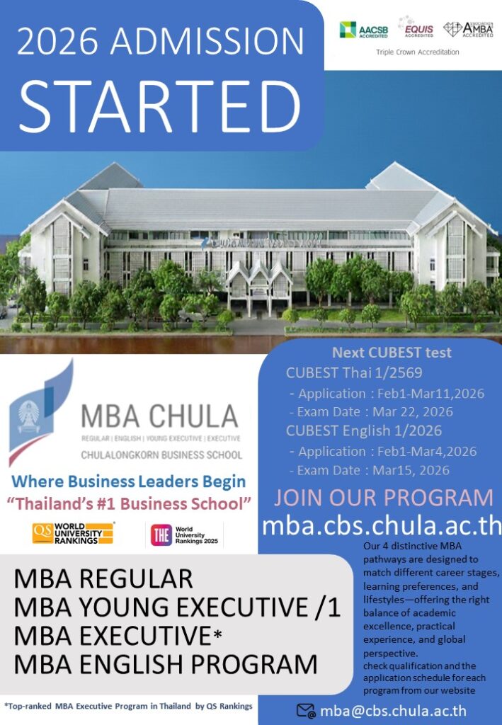 หลักสูตร MBA CHULA เปิดรับสมัครนิสิตใหม่ ประจำปีการศึกษา 2569